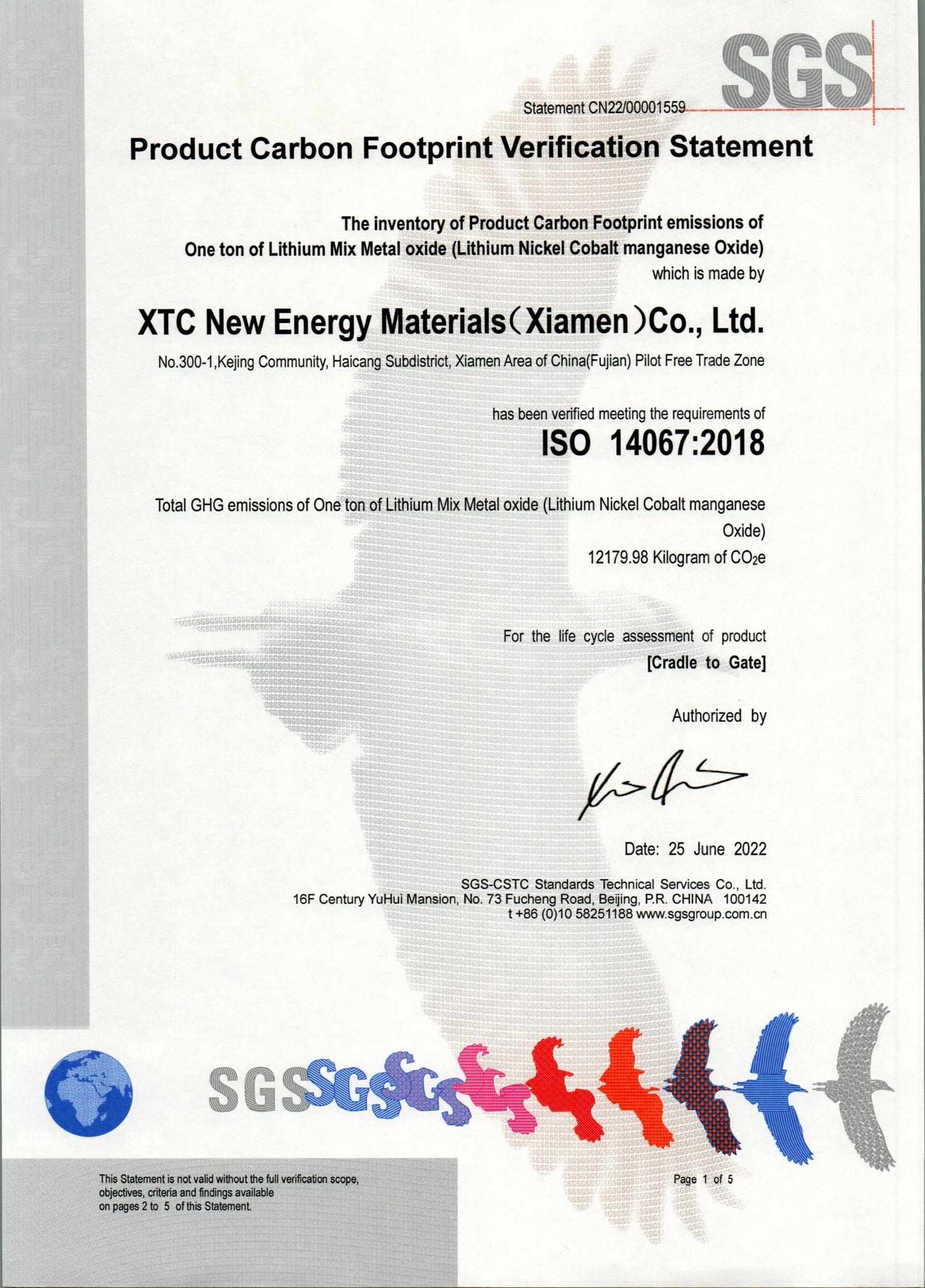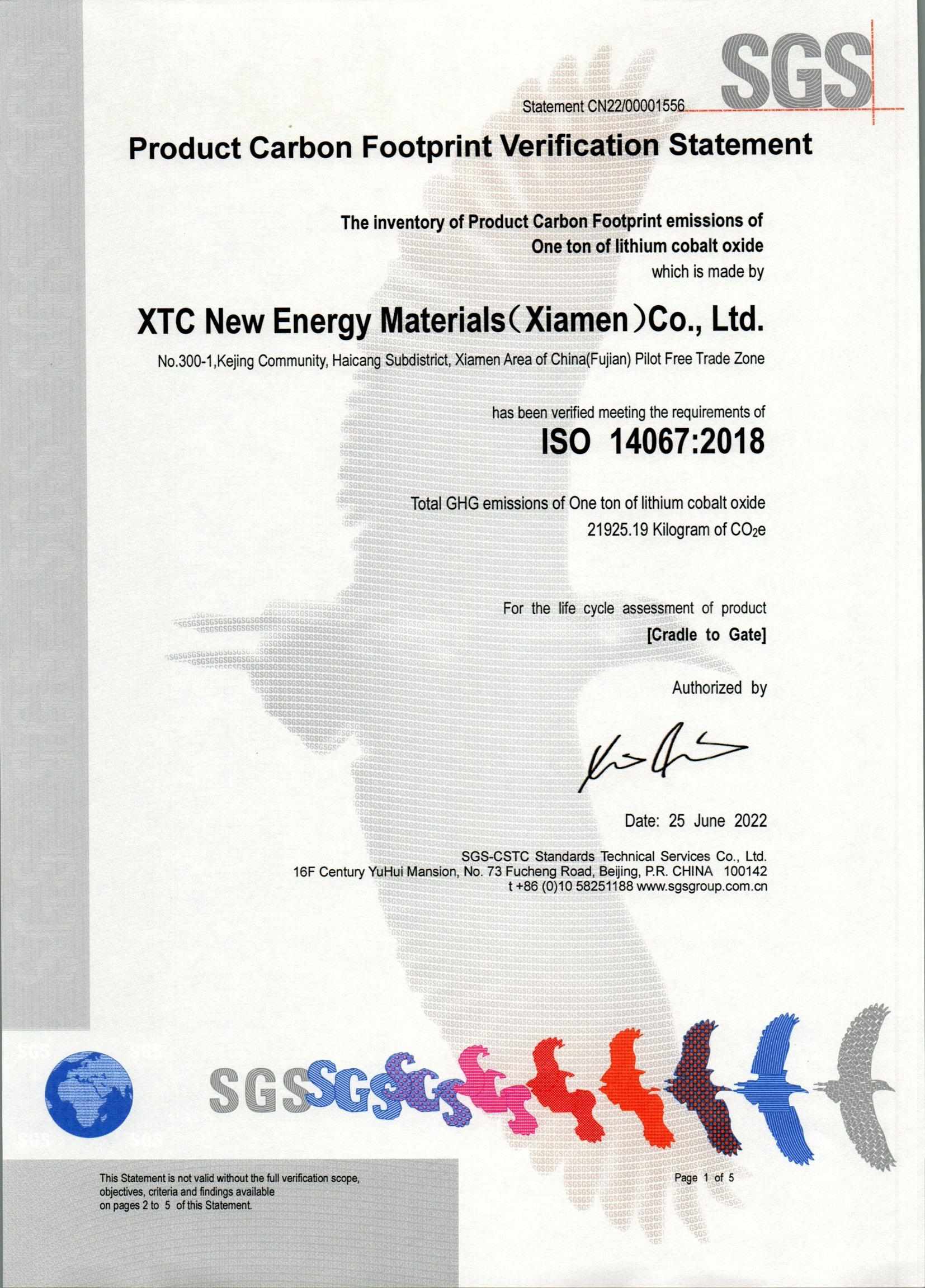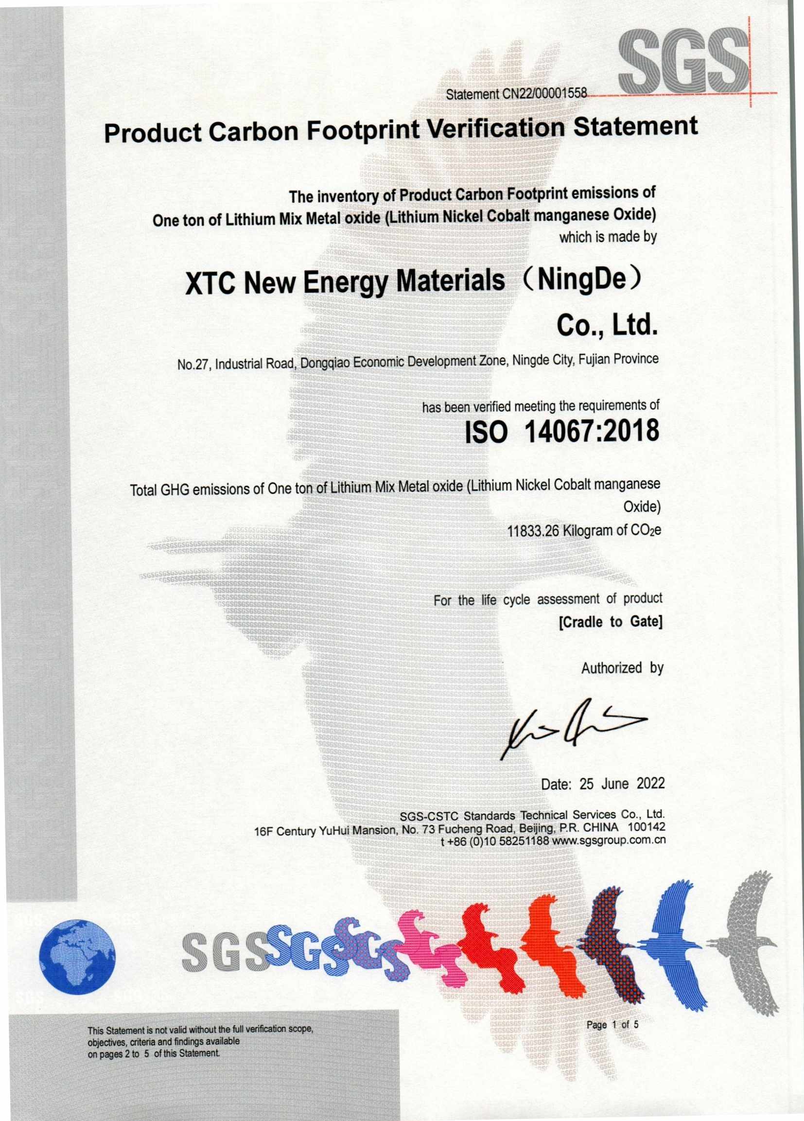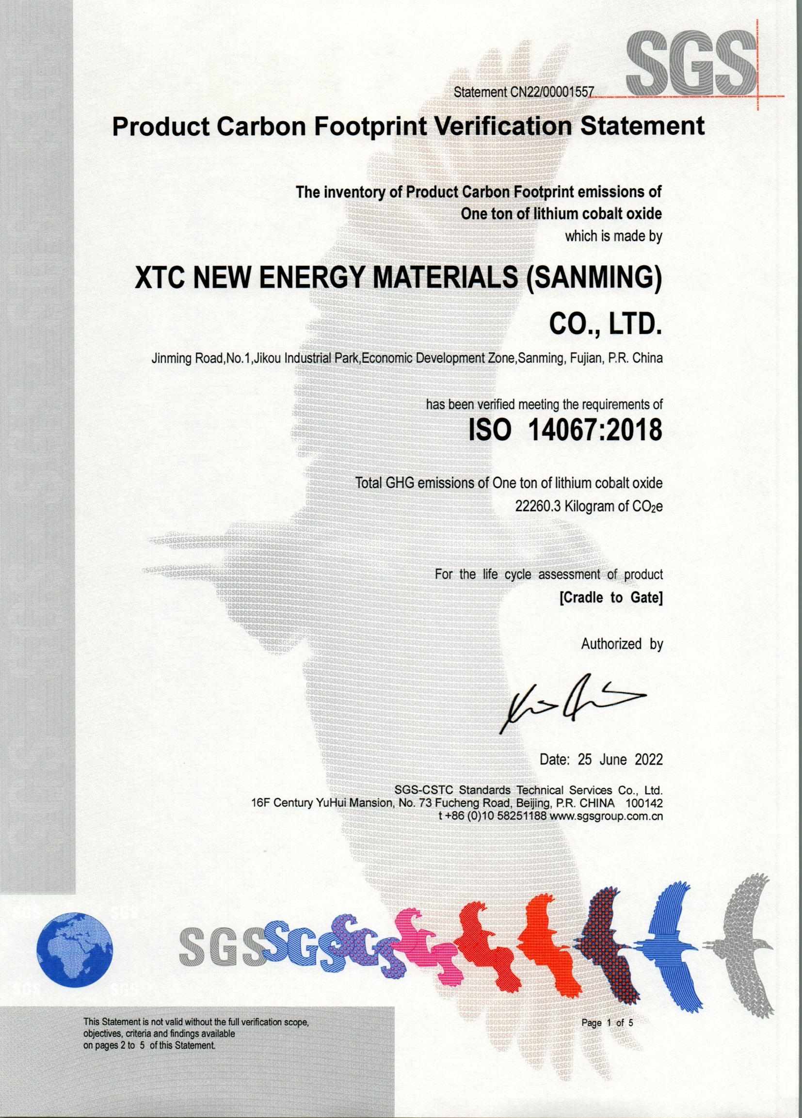 廈門、三明、寧德基地碳足跡14067認(rèn)證書(shū)公示